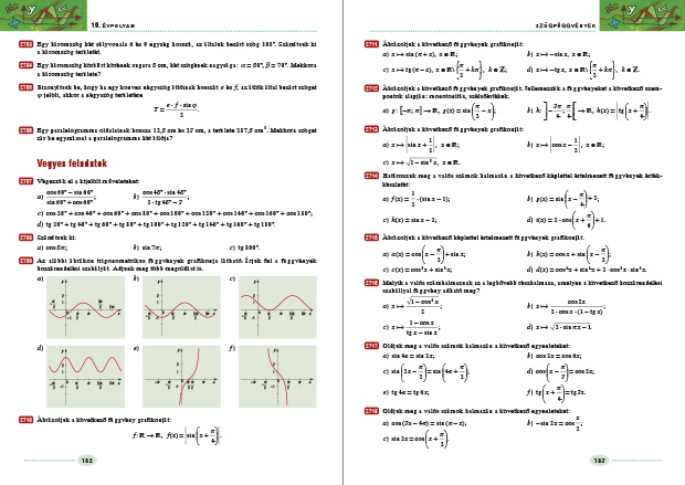 | A koszinuszfüggvény grafikonja, egyenletek, egyenlőtlenségek | 176 |